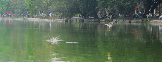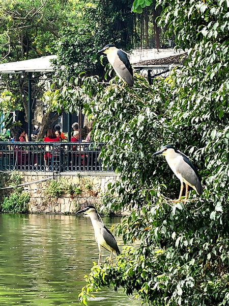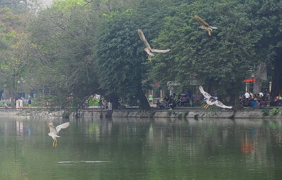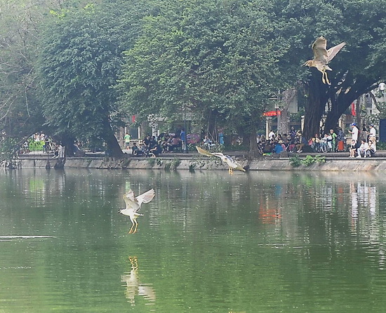 Sáng thứ 7, (19-4-2025) một đàn cò xanh xuất hiện ở Hồ Gươm.