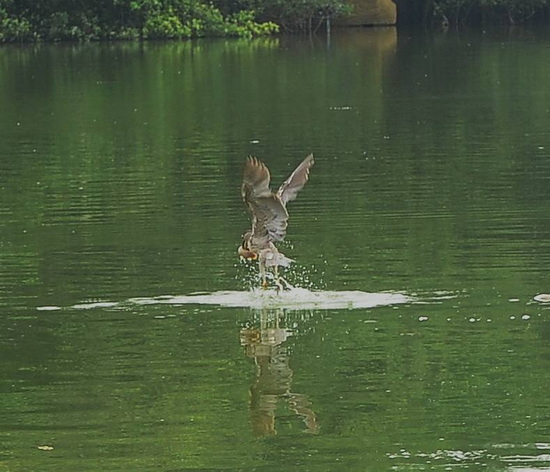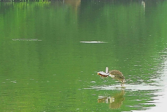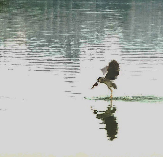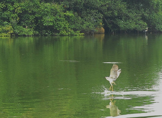 Những lần trước chúng tôi thường nhìn thấy cò xanh đậu trên cành cây sát mép nước, đơn độc để săn mồi, nhưng lần này thì cò xanh tập trung thành nhóm nhỏ. Nhìn cò xanh săn cá mà chúng tôi có cảm tưởng chúng như các vũ công trên mặt nước vậy.